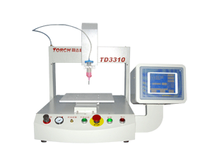 在同志科技自动点胶机获得广大客户的认可和成功应用后,2007年11月16日,同志科技正式推出了新一代产品-2008款全自动点胶机TD3310,这是一款基于三轴控制的自动点胶解决方案,它打破了传统手动点胶机效率低的设计思路,触摸屏的操作和右侧的面板设计。非常方便人员操作。新款三轴点胶机的推出,解决了老款三轴点胶机速度慢,编程麻烦等缺点。直接可以通过计算机下载数据。或者通过U盘拷贝数据。实现编程快速化,帮助企业提高生产效率。