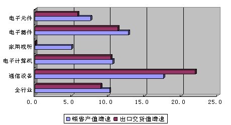 (一)通信设备行业、电子器件行业保持较快增长;家用视听、电子元件行业继续低位徘徊。